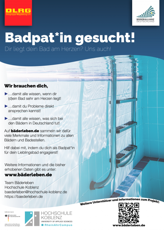 Liebe Kameradinnen und Kameraden, bereits im letzten Newsletter haben wir über unsere Kampagne „Rettet die Bäder“ berichtet. Kern der Kampagne ist eine Online-Petition, in der die DLRG eine angemessene und nachhaltige Bäderversorgung durch systematische Bedarfsplanung und -deckung im Rahmen eines bundesweiten Masterplans fordert. Mehr... ... Mehr erfahren