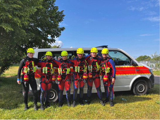 Am vergangenen Pfingstwochenende nahmen sechs Einsatzkräfte der Deutschen Lebens-Rettungs- Gesellschaft Ortsgruppe Magdeburg e.V. (DLRG) im Burgenlandkreis am Lehrgang Strömungsretter 1 im teil. Ziel dieses Sonderlehrgangs ist es, fundierte Grundkenntnisse auf dem umfangreichen Gebiet der Strömungsrettung zu erlangen. Ein Schwerpunkt des Lehrgangs lag auf dem Umgang mit der Persönlichen Schutzausrüstung für Strömungsretter. Ebenso wurde der Umgang mit verschiedenen Rettungsmitteln trainiert. Ein Highlight des viertägigen Lehrgangs war das gemeinsame Schwimmen in schnellfließendem Gewässer sowie das Abseilen von einer Brücke zur Rettung einer Person aus einem Fluss. Voraussetzung zur Teilnahme an diesem Lehrgang sind verschiedene Grundmodule wie die sogenannte Basisausbildung Eins ... Mehr erfahren
