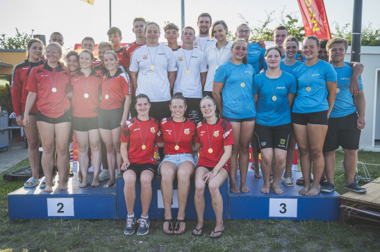 Mit ordentlich Trainingslager-Kilometern in den Knochen ging es für unsere AthletInnen vom 17.-19.07. an den Ostseestrand von Warnemünde. Unterhalb des Teepotts traten ca. 240 Sportler und Sportlerinnen, darunter 32 Ortsgruppen aus Deutschland sowie Teams aus Belgien, Schweden und der Schweiz.   Das Wettkampfprogramm umfasste sechs Einzel- und fünf Mannschaftsdisziplinen. In der Stranddisziplin „Beach Flags“, bei welcher die RettungssportlerInnen aus der Bauchlage heraus einen ca. 20m langen Kurzsprint absolvieren und anschließend einen Stab (Flag) ergreifen – wobei es pro Lauf weniger Flags als AthletInnen gibt, erkämpften sich zwei unserer Aktiven in spannenden Finalläufen je einen Podestplatz (Nicki: Platz 3, Martin: Platz 2)   In der Disziplin „Surf Race“ (dt. Bra ... Mehr erfahren