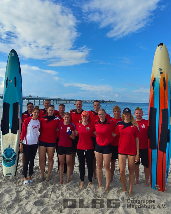 Knapp zwei Monate nach der ersten Etappe ging es für unsere RettungssportlerInnen am vergangenen Samstag (02.08.) erneut um wichtige Punkte in der Trophy-Wertung   Nahe der Seebrücke in Prerow absolvierten mehr als 170 Athletinnen und Athleten aus 25 deutschen Teams, darunter auch neun Aktive der DLRG Ortsgruppe Magdeburg e. V., insgesamt sechs Einzel- und fünf Mannschaftsdisziplinen.   In der Disziplin „Beach Flags“ konnte Martin seine gute Form bestätigen und erkämpfte sich in einem spannenden Duell den zweiten Platz.   In der Staffel „Rescue Tube Rescue“ (Retten mit Gurtretter) sicherte sich das Herren-Team mit dem fünften Platz fantastische 13 Punkte für die Gesamtwertung. Bei dieser Wettkampfdisziplin schwamm Luke zu einer ihm zugewiesenen Boje. Dort a ... Mehr erfahren